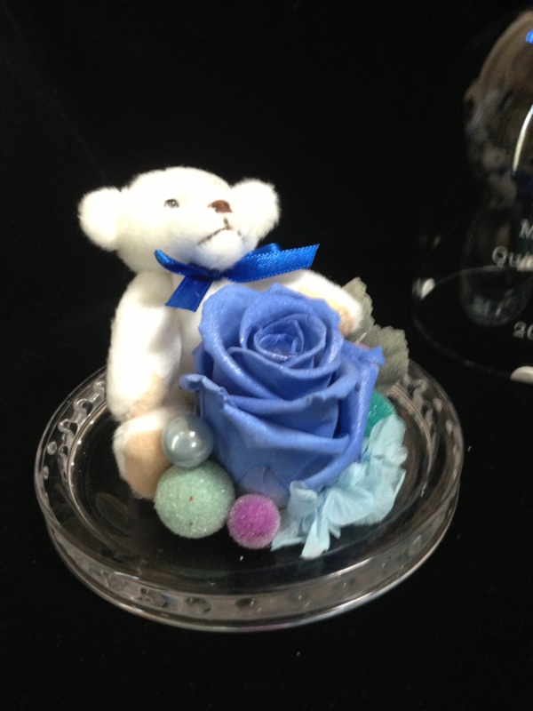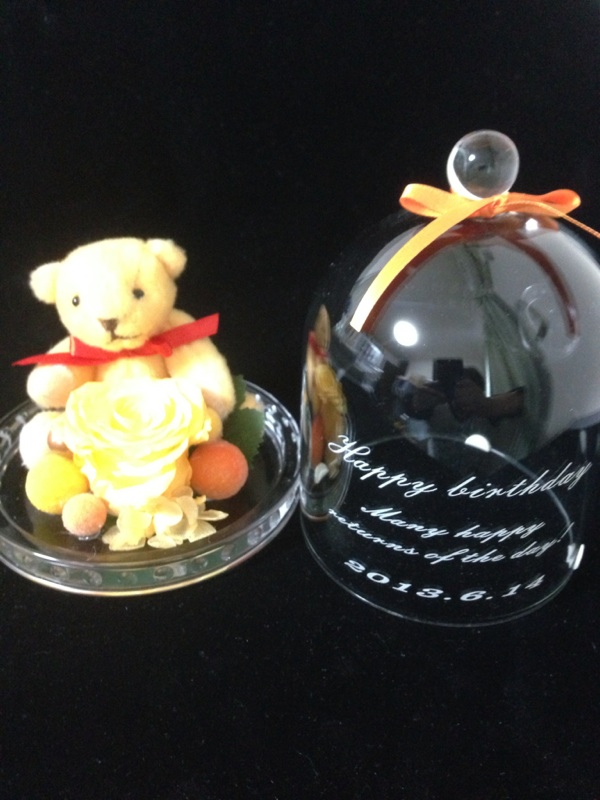 温度で色が変わり、蓄光でも光る花のプリザーブドフラワーをお誕生日プレゼントにと代理購入でご依頼いただきました。